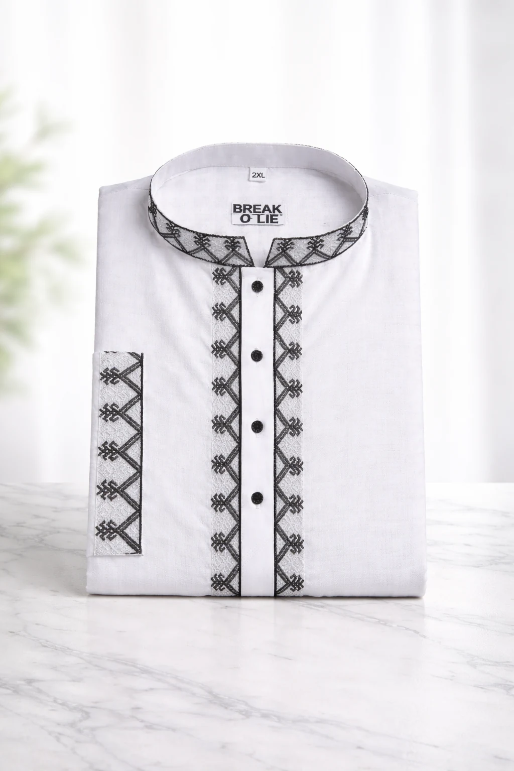 BreakOrDie | Hand & Heart™ Men’s Panjabi – White with Black Heritage Embroidery