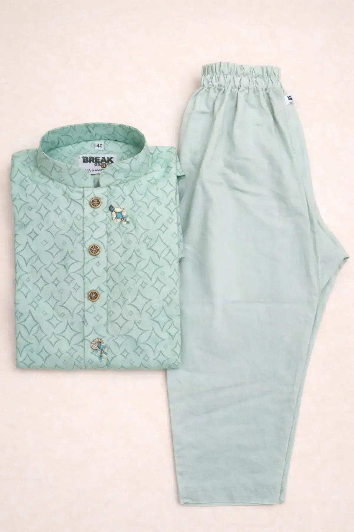 The Break Or Die | Hand & Heart™ Kids Mint Green Printed Panjabi Set with Mint Green Pajama is designed to celebrate tradition with softness, comfort, and timeless elegance—made especially for your little one’s precious moments.