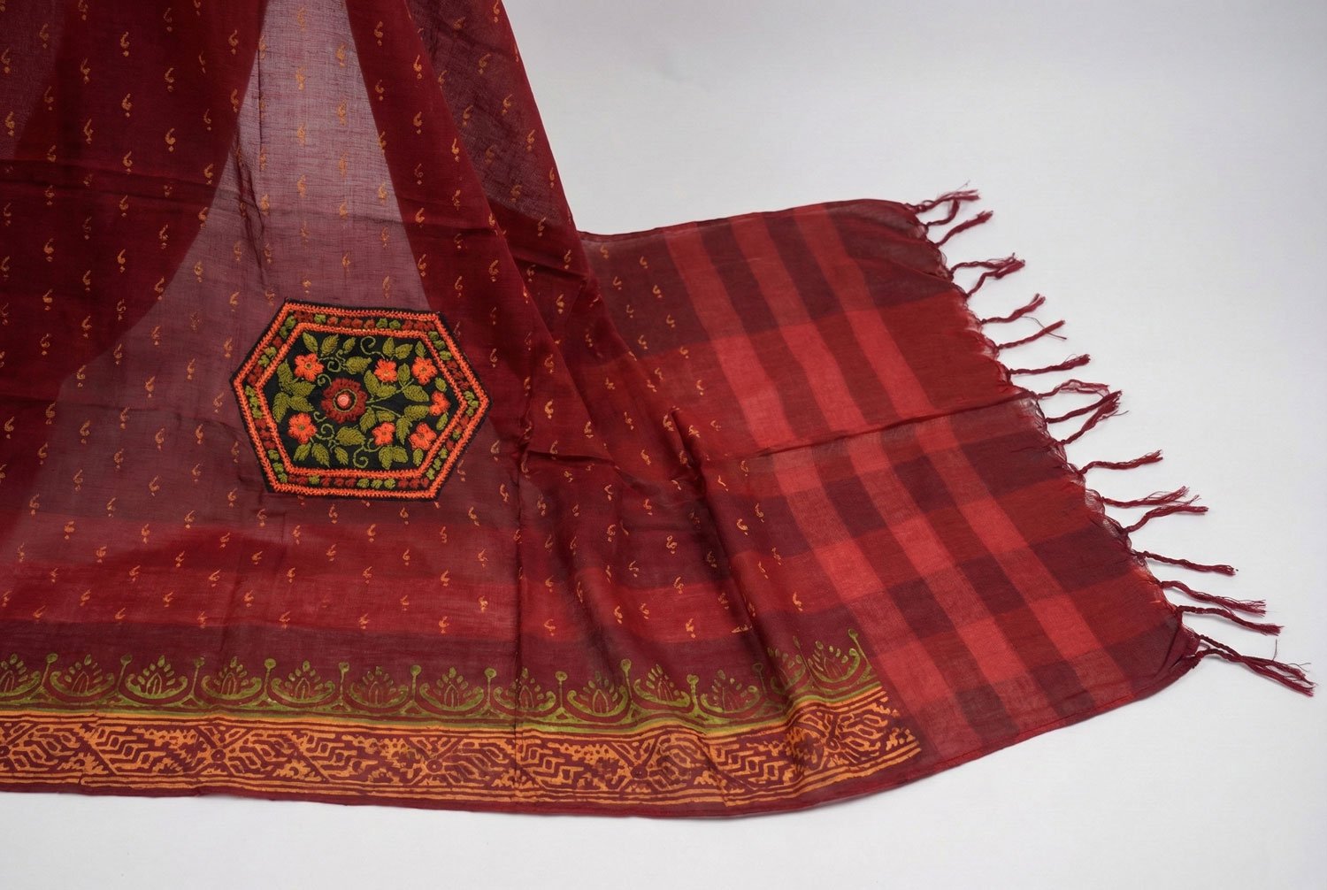 Dupatta (matching scarf) that completes the ensemble with balance, color harmony, and traditional flair