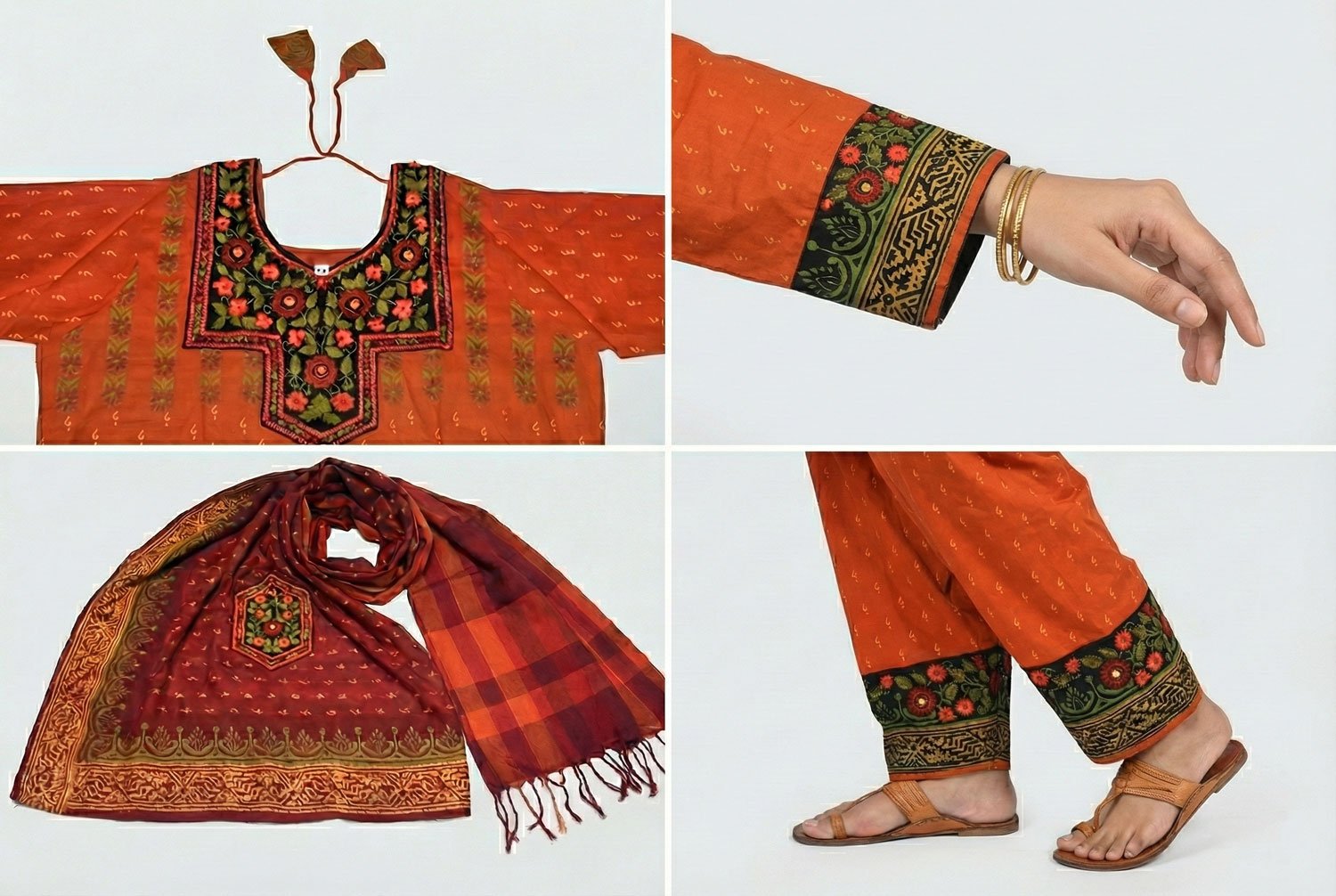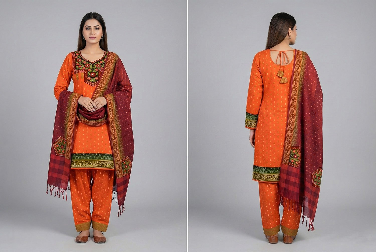 This handcrafted three-piece women’s ethnic set is a celebration of traditional artistry, thoughtful design, and everyday elegance. Carefully made by skilled hands, each set blends heritage craftsmanship with wearable comfort—making it suitable for both special occasions and graceful daily wear.
