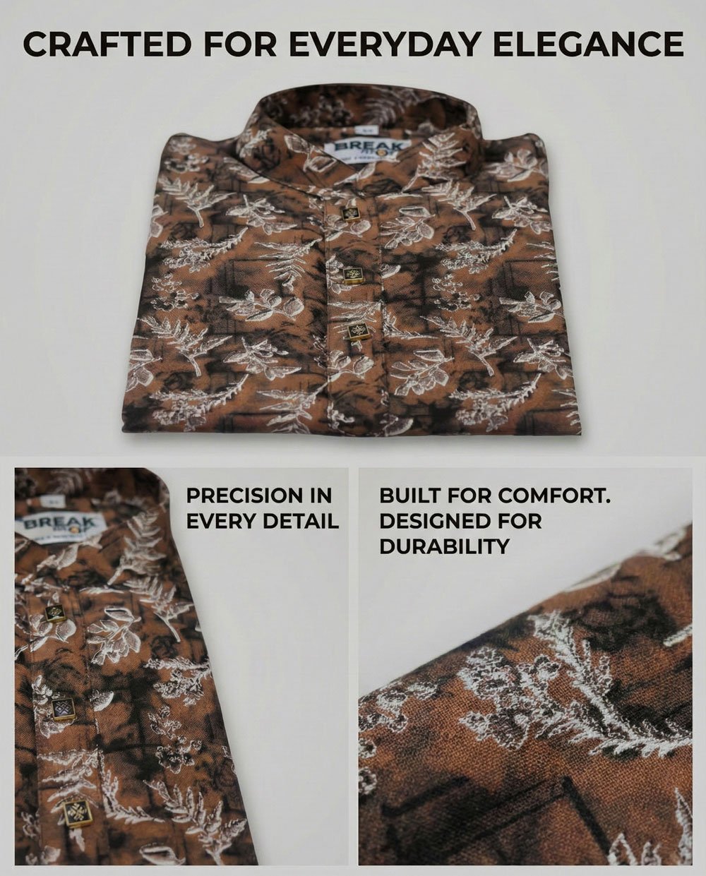 The Break Or Die | Hand & Heart™ Kids Brown Floral Printed Kurta Set with White Pajama reflects timeless tradition blended with everyday comfort, thoughtfully designed for young boys who deserve both style and ease.