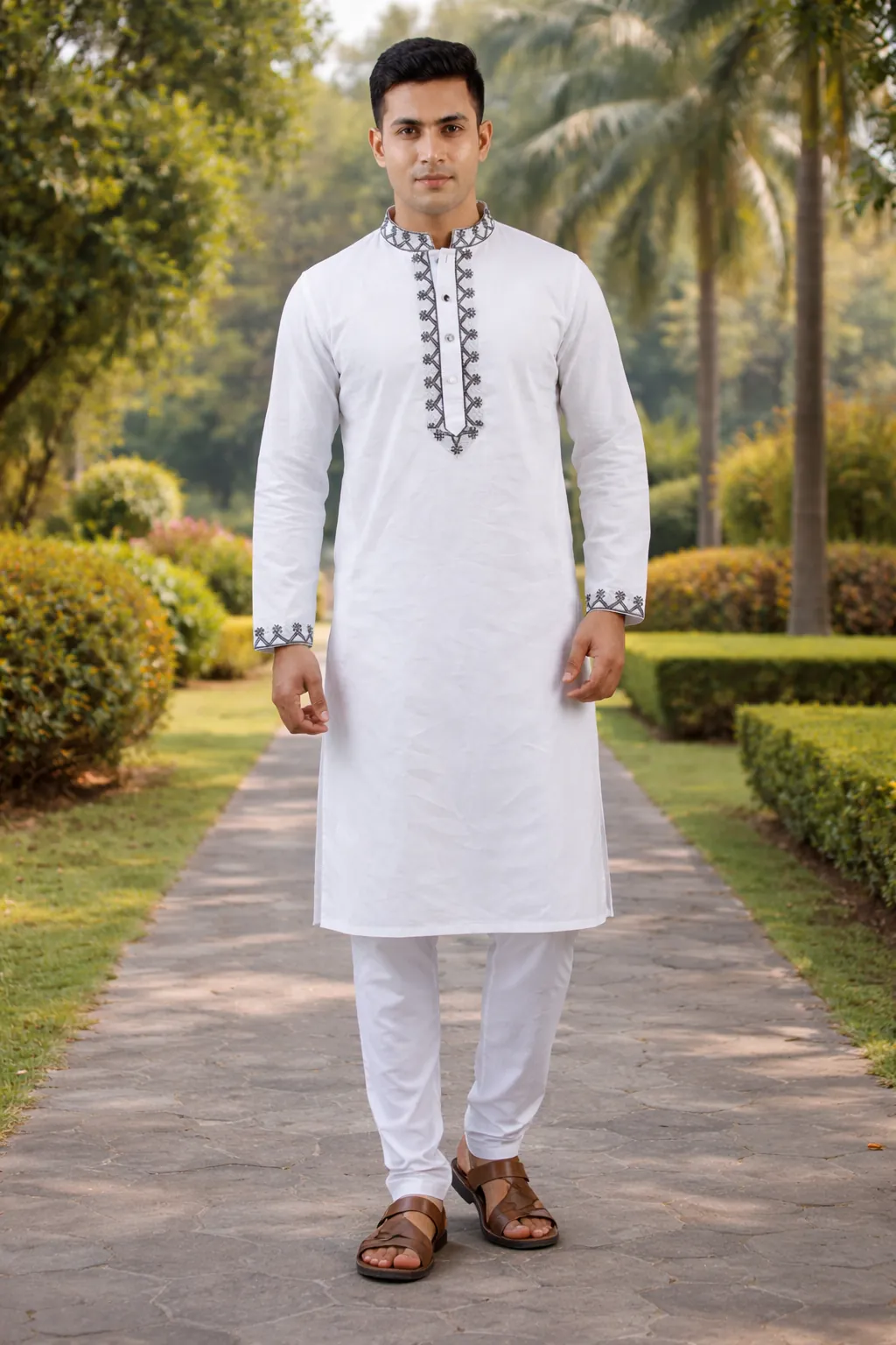 BreakOrDie | Hand & Heart™ Men’s Panjabi – White with Black Heritage EmbroideryBreakOrDie | Hand & Heart™ Men’s Panjabi – White with Black Heritage Embroidery