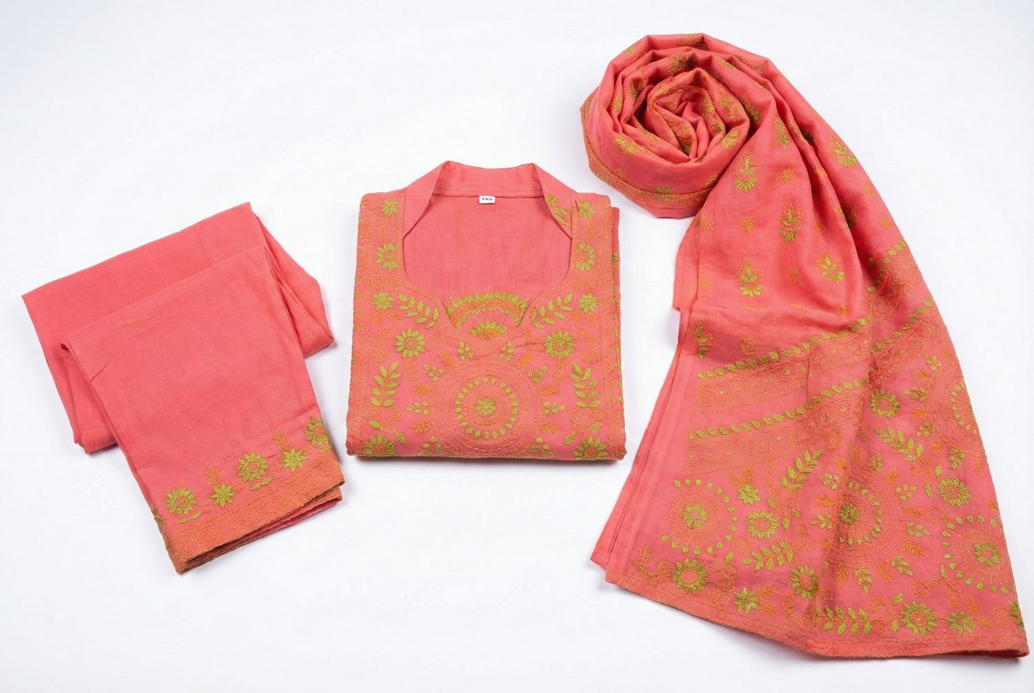 BreakOrDie - Hand & Heart™ Three-Piece Women’s Ethnic Set – Hand-Embroidered Elegance - Rose Blush / Coral PinkBreakOrDie – Hand & Heart™ Three-Piece Women’s Ethnic Set – Hand-Embroidered Elegance – Rose Blush / Coral Pink