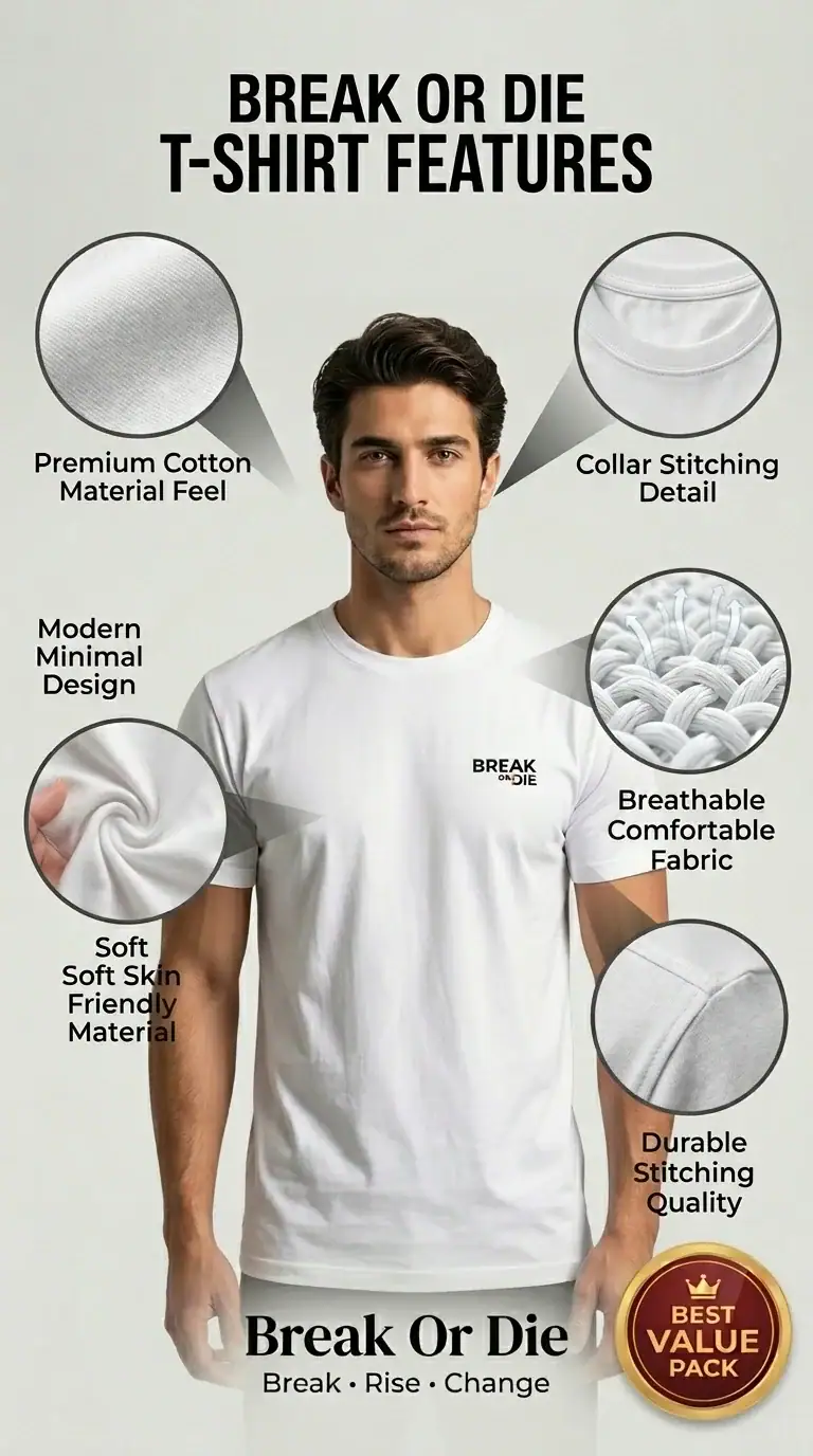 • The BreakOrDie | Signature EliteCraft™ Logo T-Shirt Combo Pack brings together three essential colorways—Black, White, and Forest Green—designed for men who appreciate refined streetwear with substance and intention.