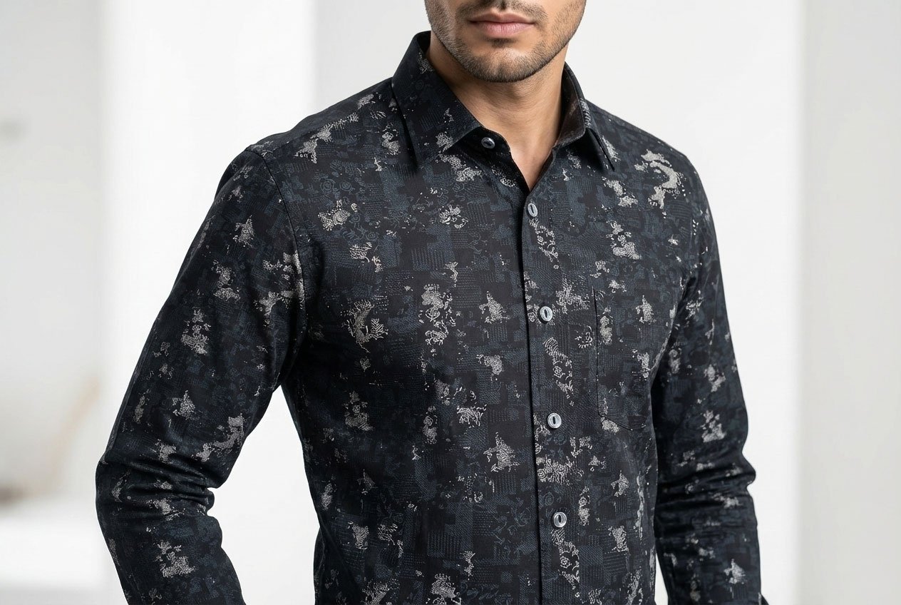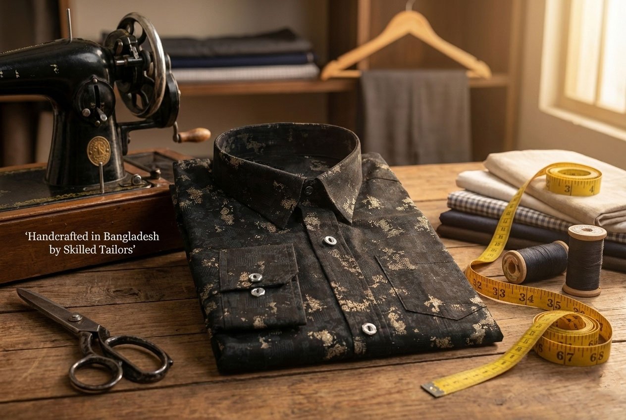 The deep noir black tone paired with a subtle textured pattern delivers a bold yet refined look—perfect for daily wear, cultural gatherings, evening events, or elevated casual occasions. Designed with a balanced fit and durable construction, this shirt reflects the tradition of slow, thoughtful tailoring passed down through generations.
