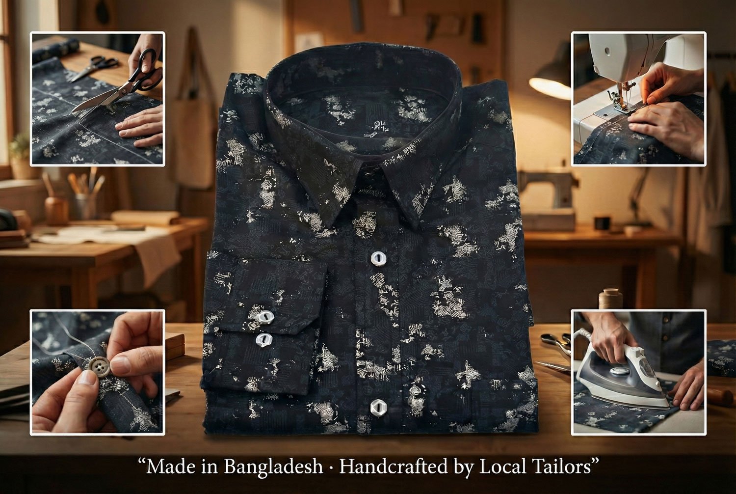 Made from 100% pure cotton, this shirt offers natural breathability, softness, and comfort that improves with every wear. Unlike mass-produced garments, each piece is carefully crafted by skilled village tailors, where quality is personal and every stitch is inspected by hand.