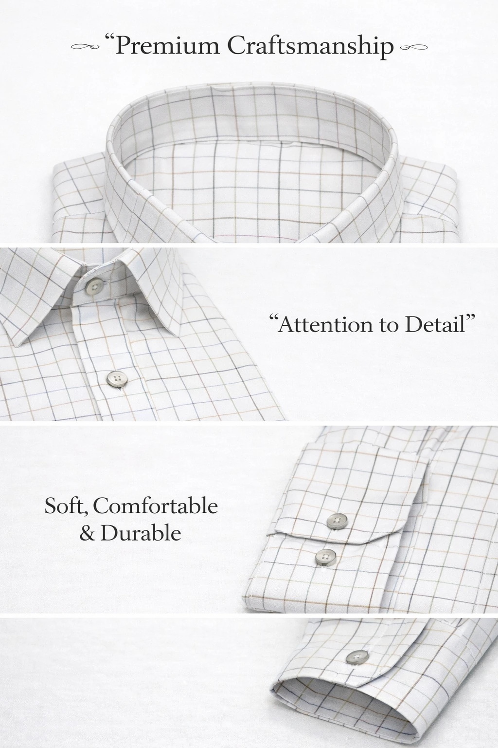 The soft ivory tone paired with a clean, understated grid pattern creates a versatile aesthetic—effortlessly transitioning from professional settings to casual gatherings. Designed with a balanced fit, classic collar, and durable button detailing, this shirt is built to age beautifully with wear.