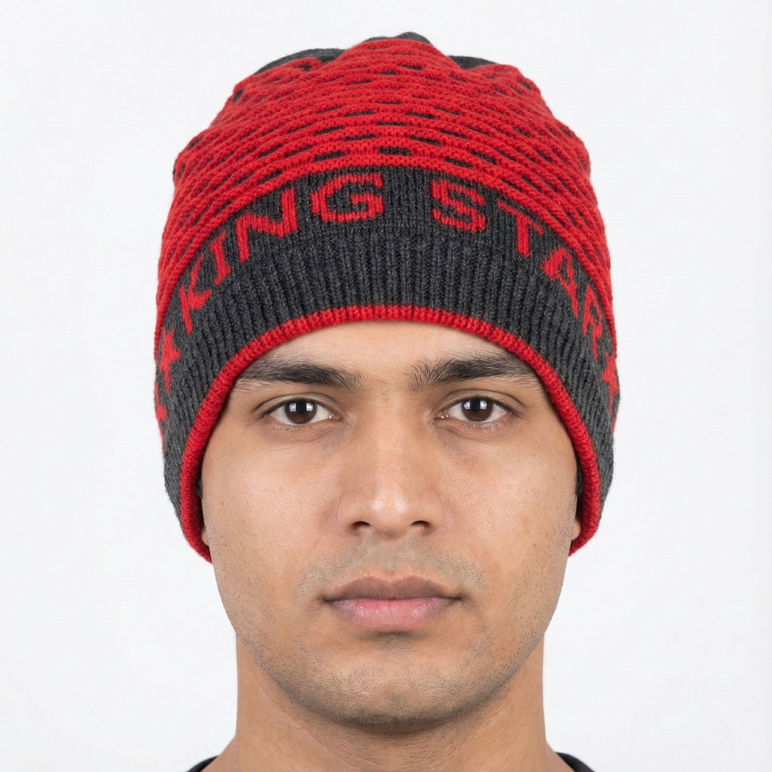 A bold and stylish winter hat featuring a unique red-mesh knit design over a charcoal base. Warm, eye-catching, and built for comfort.