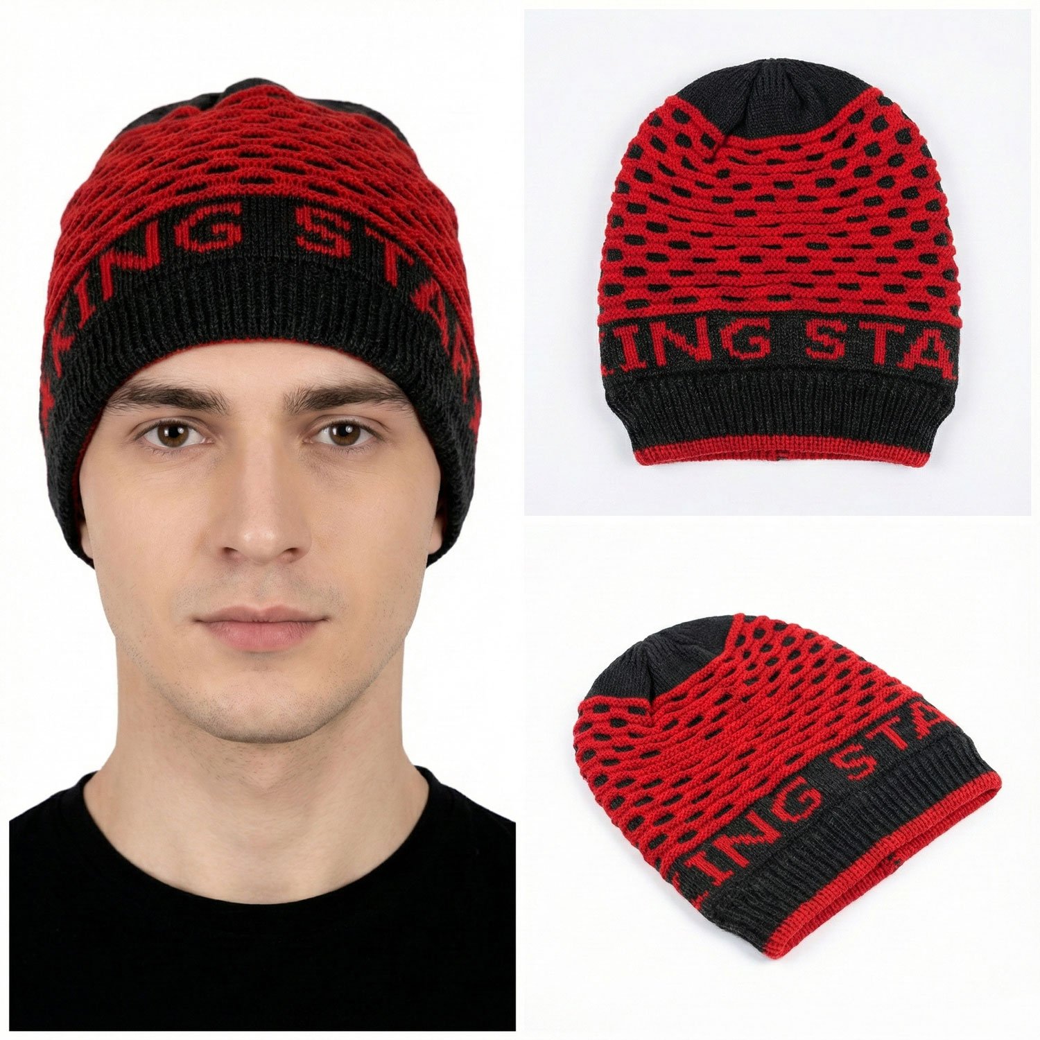 BreakOrDie – Unisex Winter Style Knit Hat – Red & Black Mesh Pattern
