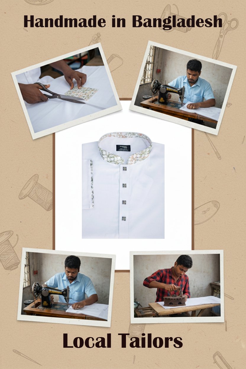 Crafted through Hand & Heart™, each Panjabi is carefully made by skilled village tailors—supporting artisan families while preserving generations of traditional craftsmanship. Every stitch reflects patience, precision, and intention.