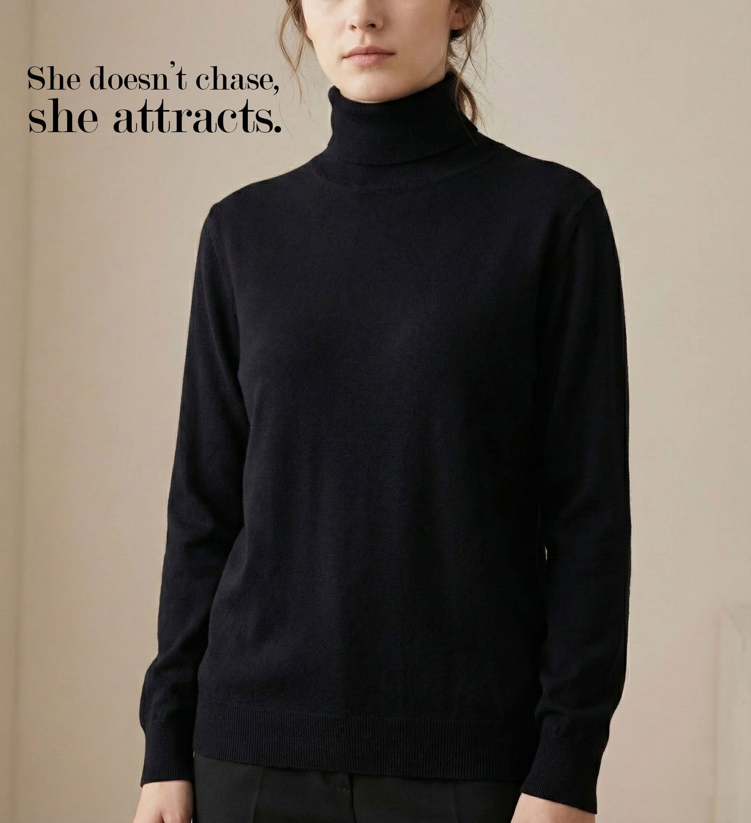 A chic jet-black women’s winter turtleneck sweater made from soft 170 GSM fabric — warm, stylish, and perfect for layering.