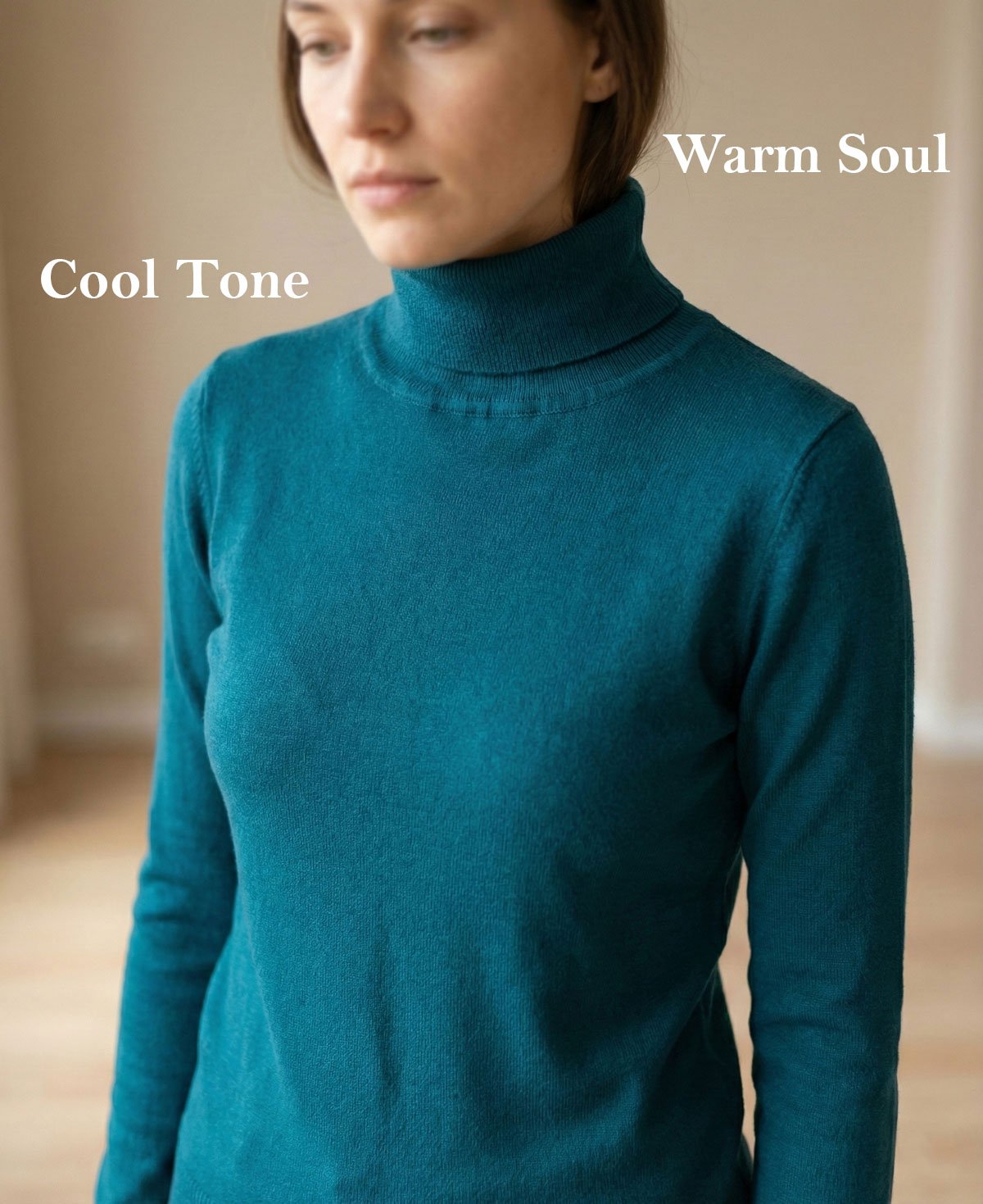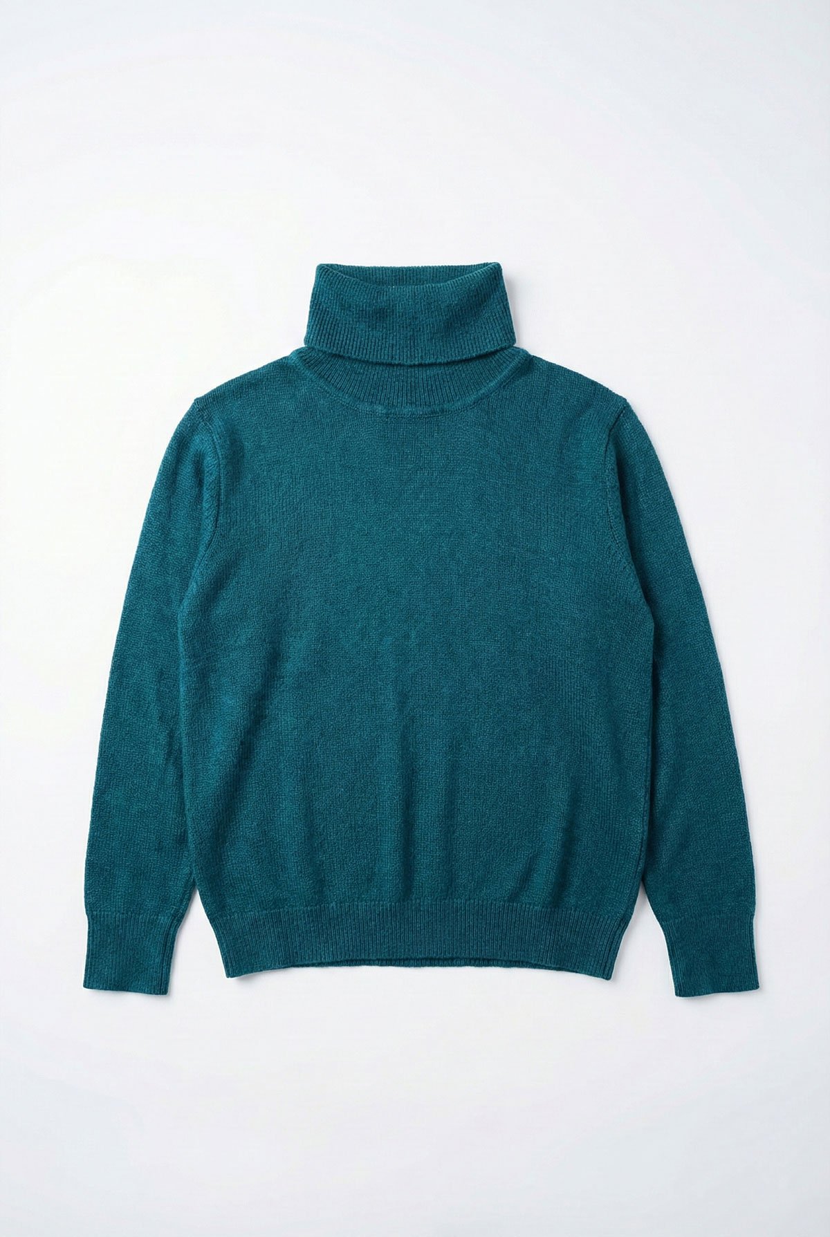Designed for both warmth and sophistication, the Deep Teal High-Neck Sweater stands out with its rich color and soft texture. Perfect for winter outings and layering.